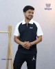 A stylish black and white polo T-shirt featuring a clean contrast panel design with a minimal chest logo and half-zip neckline. Designed for a modern and sporty look, this piece blends comfort with everyday style, making it perfect for casual and smart casual wear.