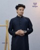 A timeless jet black panjabi crafted from premium bamboo silk fabric, featuring a subtle self-woven geometric texture that enhances its depth and sophisticated formal appeal.