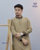 A refined olive-gold panjabi crafted from premium textured fabric, highlighted with elegant embroidered detailing on the collar and cuffs. The subtle texture with contrast embroidery creates a sophisticated festive appearance.
