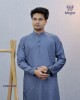A modern steel blue panjabi crafted from premium bamboo silk fabric, featuring a subtle self-woven pattern and a soft natural sheen that enhances its refined and contemporary festive appeal.