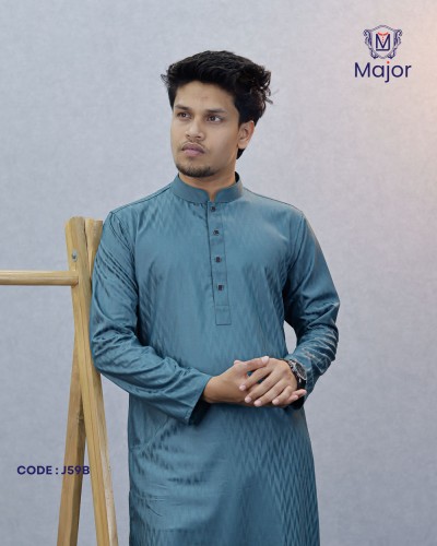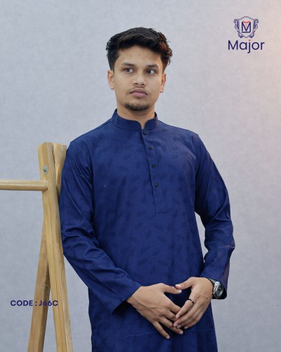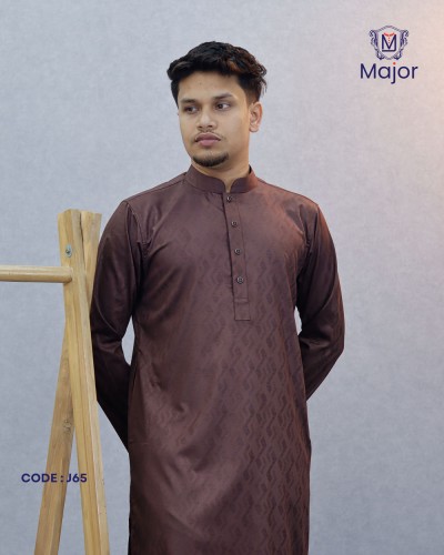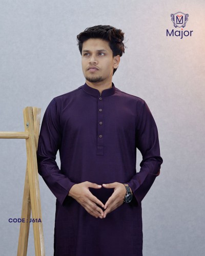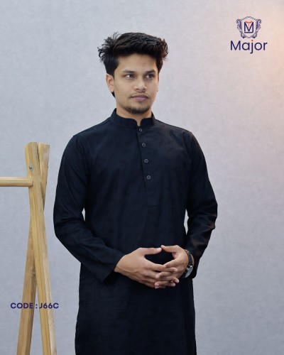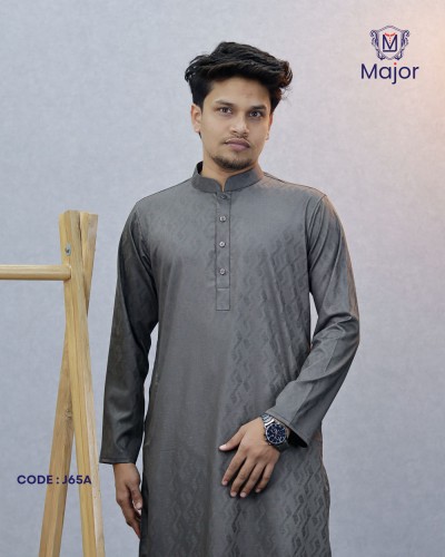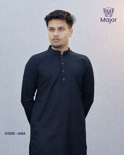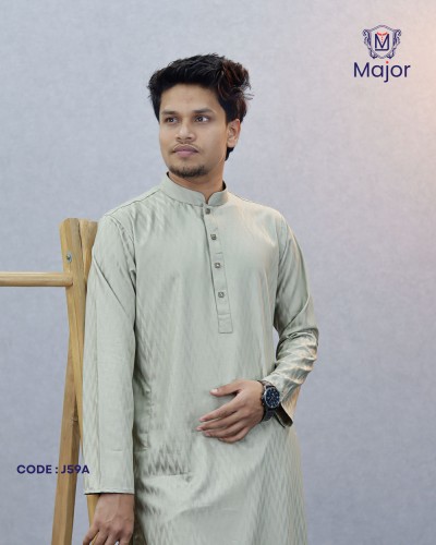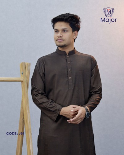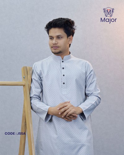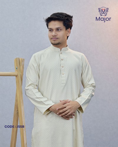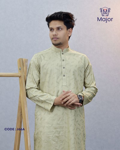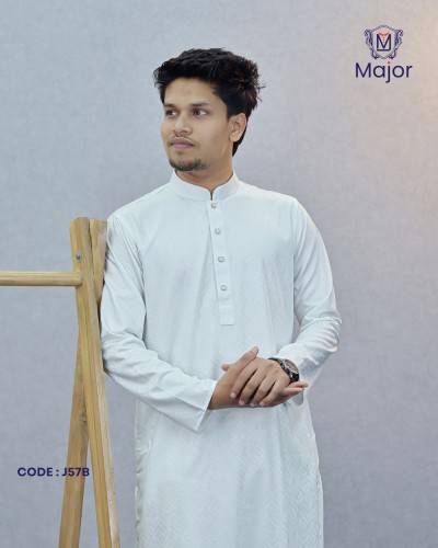 A refined white panjabi featuring elegant golden embroidery on the collar and cuffs, paired with a clean solid body—perfect for a graceful and sophisticated ethnic look.