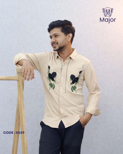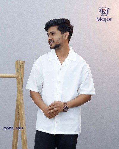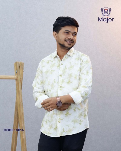A stylish white casual shirt featuring elegant leaf-inspired prints for a fresh, modern, and comfortable everyday look.